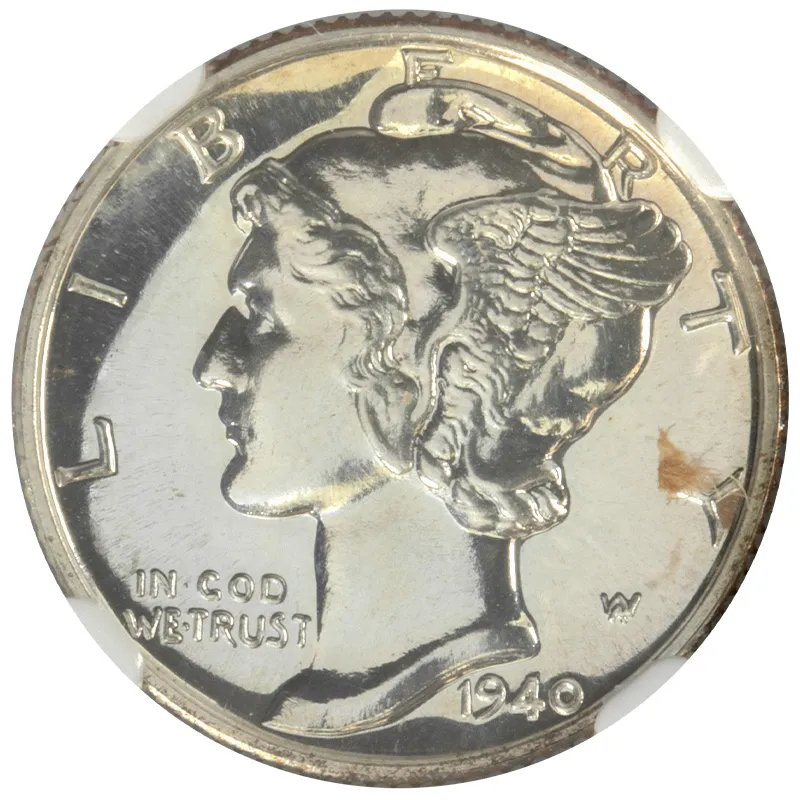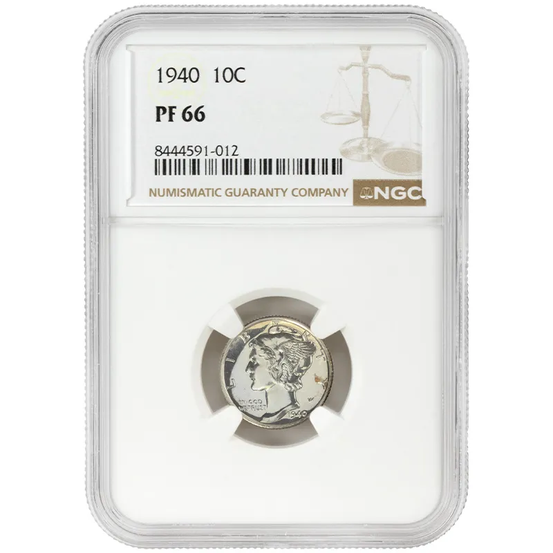 Discover the exquisite 1940 Mercury Dime, a stunning representation of American numismatic craftsmanship. Graded NGC PF66, this proof coin boasts exceptional clarity and brilliant luster, making it a must-have for collectors and investors alike. The Mercury Dime, known for its iconic depiction of Liberty in a winged cap, celebrates both artistry and historical significance, epitomizing the beauty of early 20th-century American coinage. With only a limited number of these proof coins minted, the 1940 Mercury Dime is an exceptional addition to any collection, symbolizing wealth and artistry. Secure this pristine piece of history and enhance your portfolio with a coin that truly represents the legacy of American currency.