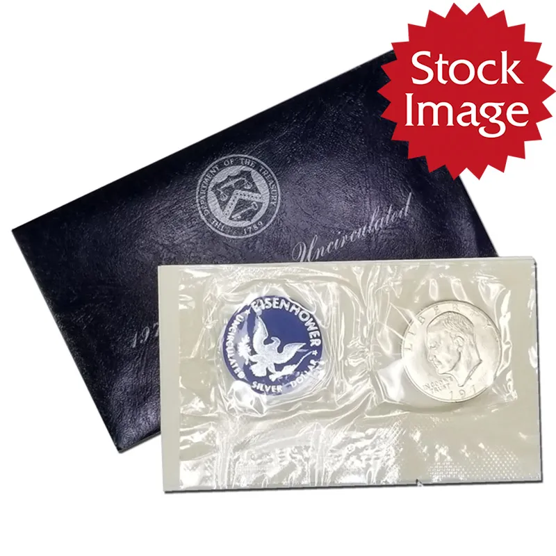 This Eisenhower Dollar coin comes in the original government blue envelope with COA.