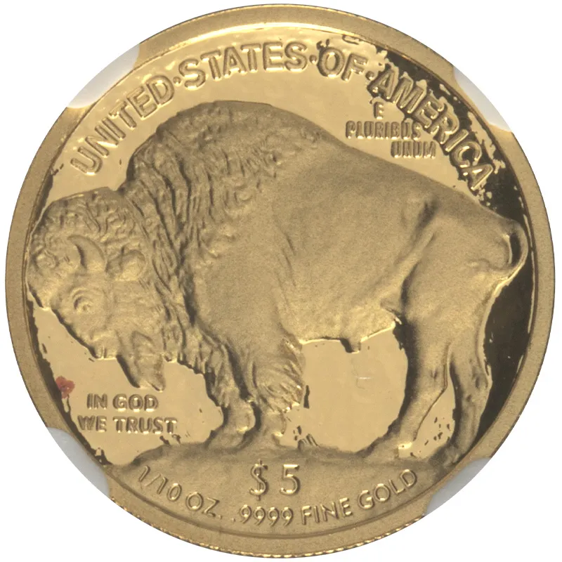 Discover the exquisite allure of the 2008 W 1/10 oz Uncirculated Gold Buffalo $5 coin. This stunning bullion piece, minted in 2008, showcases the iconic Buffalo design, a tribute to America's rich numismatic history. Crafted from 1/10 ounce of pure 24-karat gold, this uncirculated coin not only serves as a valuable investment but also as a collector's treasure. The Gold Buffalo coin is renowned for its exceptional quality, featuring intricate details that highlight the craftsmanship of the United States Mint. Whether you're a seasoned collector or a new investor, the 2008 W Gold Buffalo is a brilliant addition to your coin portfolio, symbolizing both heritage and elegance in every piece. Secure a piece of history today with this remarkable gold bullion coin, perfect for both investment and collection and a must-have for enthusiasts of American coins.