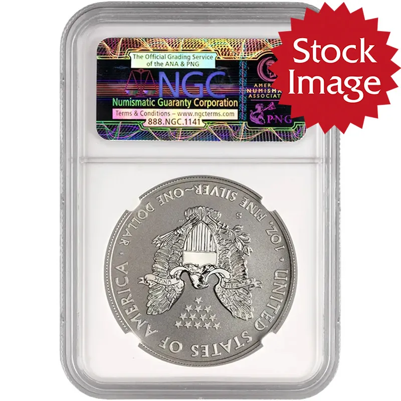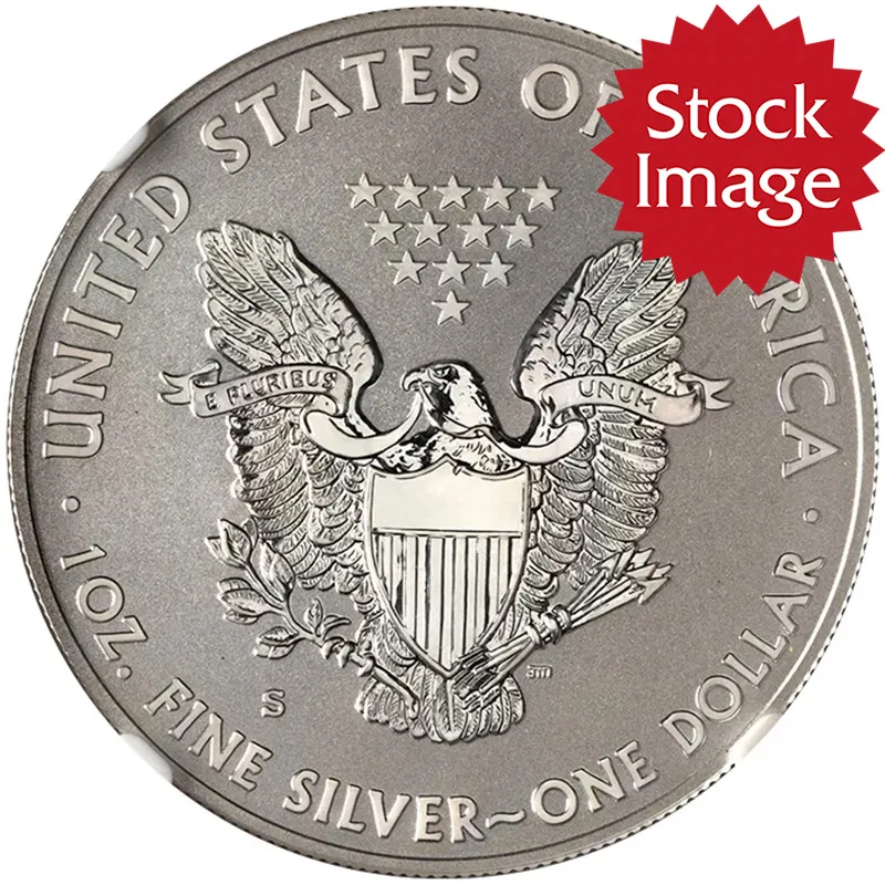 The Reverse Proof Silver Eagle from the two-coin 75th Anniversary American Silver Eagle Set.