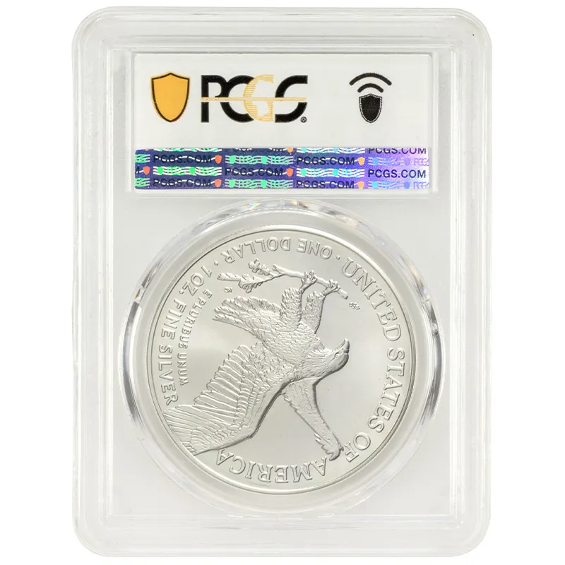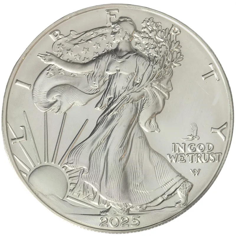 Discover the 2025 American Silver Eagle, certified by PCGS with a remarkable MS70 grade, the highest possible quality in bullion coins. This iconic coin features the classic Walking Liberty design by Adolph A. Weinman, symbolizing freedom and resilience. Struck in .999 fine silver, the 2025 edition continues the legacy of the American Silver Eagle series, celebrated for its artistry and investment value. As a must-have for collectors and investors alike, this pristine condition coin not only enhances any collection but also serves as a reliable hedge against inflation. With its historical significance and striking detail, the 2025 American Silver Eagle - PCGS MS70 is the perfect investment for anyone looking to own a piece of American numismatic history.