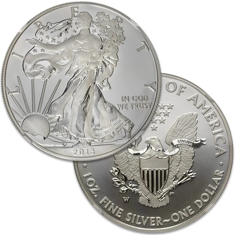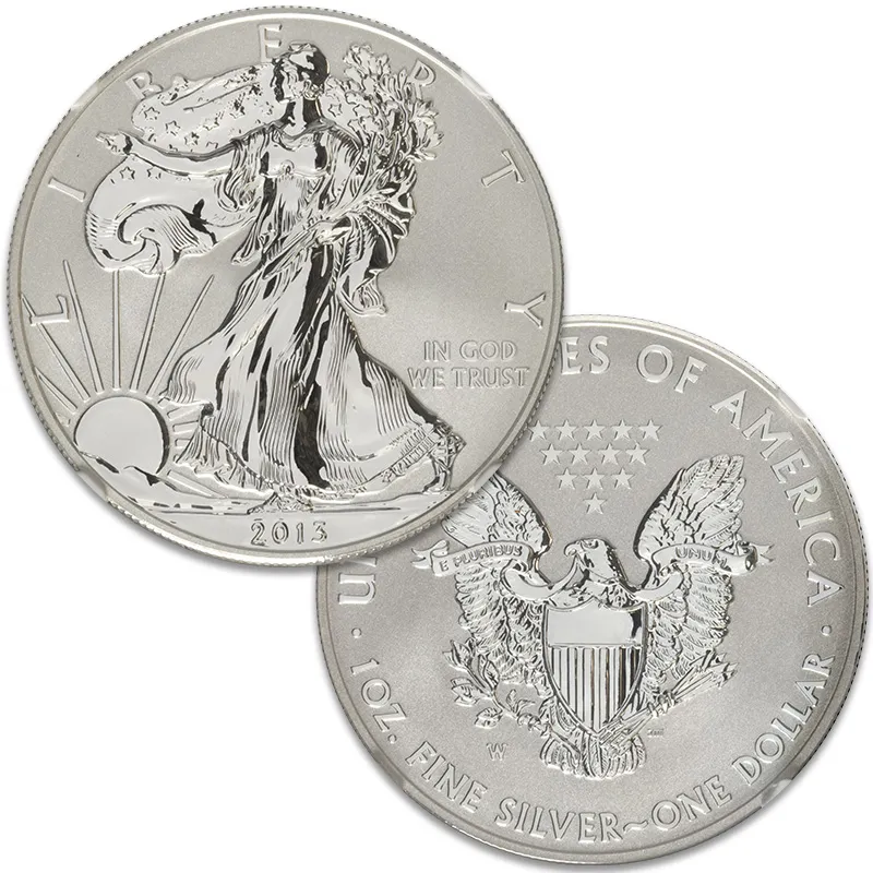 Produced at the West Point Mint, the 2013 American Silver Eagle is notable for its iconic design, featuring Adolph Weinman's beloved Walking Liberty on the obverse and a powerful eagle on the reverse, symbolizing American strength and freedom. The 2013 release has gained significant attention among collectors due to its combination of artistry, historical importance, and intrinsic silver value.
