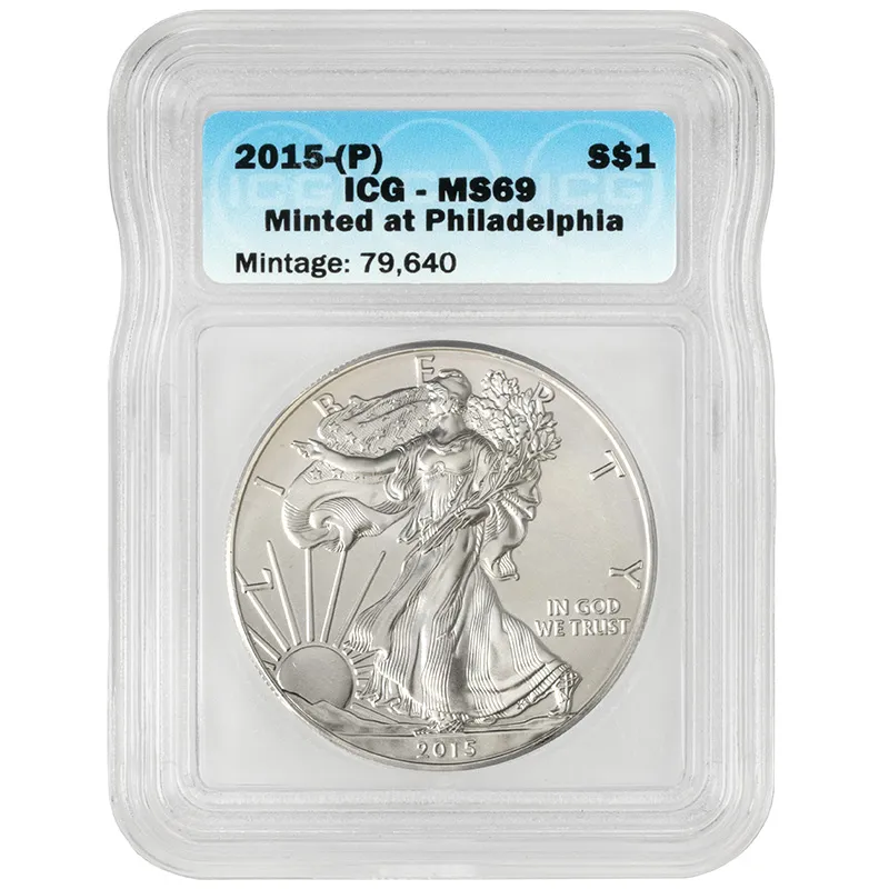 Discover the rare Emergency Issue 2015 (P) American Silver Eagle certified by ICG with a stunning grade of MS69. As one of the most rare American Silver Eagle bullion coins, this iconic piece features the beloved Walking Liberty design on the obverse, symbolizing freedom and hope. The reverse showcases the majestic American bald eagle with a shield, emphasizing the coin's historical significance and American heritage. Struck in .999 fine silver, this coin not only serves as a perfect investment for collectors but also as a beautiful addition to any numismatic collection. With its high-grade certification, this 2015 (P) Silver Eagle presents an outstanding opportunity for both seasoned investors and new collectors seeking to expand their holdings. Own a piece of American history today!