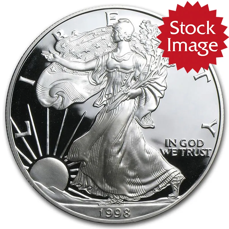 These American Eagle Silver Proof dollar coins have been produced each year by the United States government mint since 1986.  Considered by many to be one of the most beautiful American coin designs, it is modeled after the old Walking Liberty half dollars.  Each official US proof issued dollar coin contains 1 ounce of pure silver.  Each proof coin comes in the official government issued velvet lined gift box along with the original certificate of authenticity (COA) or insert card.