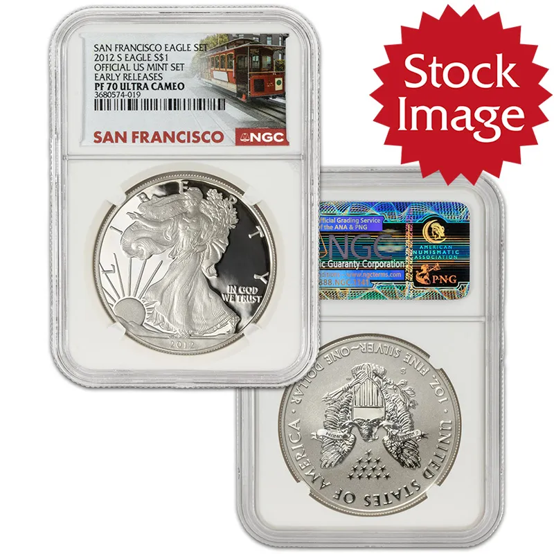 Discover the exquisite 2012 S American Silver Eagle, graded NGC PF 69 Early Release. This stunning bullion coin, struck at the San Francisco Mint, is a perfect example of numismatic artistry, featuring the iconic Walking Liberty design by Adolph A. Weinman. As a hallmark of American coinage, the Silver Eagle is highly sought after by both collectors and investors alike. With its nearly perfect Proof 69 grade from the Numismatic Guaranty Corporation (NGC), this coin exemplifies exceptional quality, brilliant luster, and meticulous detail.