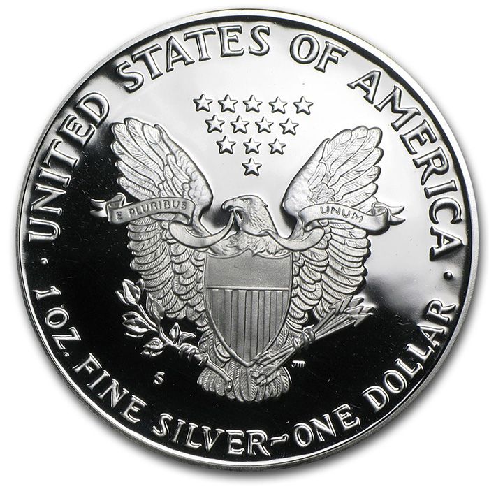 These American Eagle Silver Proof dollar coins have been produced each year by the United States government mint since 1986.  Considered by many to be one of the most beautiful American coin designs, it is modeled after the old Walking Liberty half dollars.  Each official US proof issued dollar coin contains 1 ounce of pure silver.  This item will come with the Proof Silver Eagle and the clear encapsulation only, and does not have the outer box or COA.