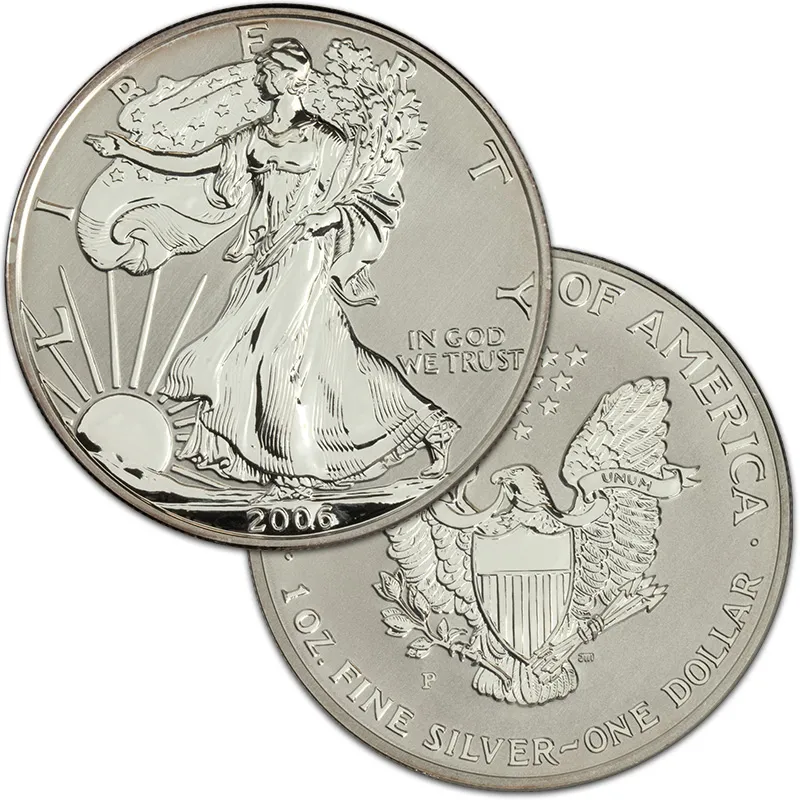 Discover the 2006 P American Silver Eagle Reverse Proof coin featuring a stunning design that sets it apart for collectors and investors alike. Minted in 2006, this bullion coin is part of the highly sought-after American Silver Eagle series, renowned for its iconic Walking Liberty design on the obverse and the majestic eagle on the reverse. The reverse proof finish adds a mirror-like quality to the background, showcasing the coin's exquisite details. This coin not only represents a tangible investment in precious metal but also celebrates American numismatic heritage. Secure this rare 2006 P American Silver Eagle Reverse Proof and enhance your collection today.